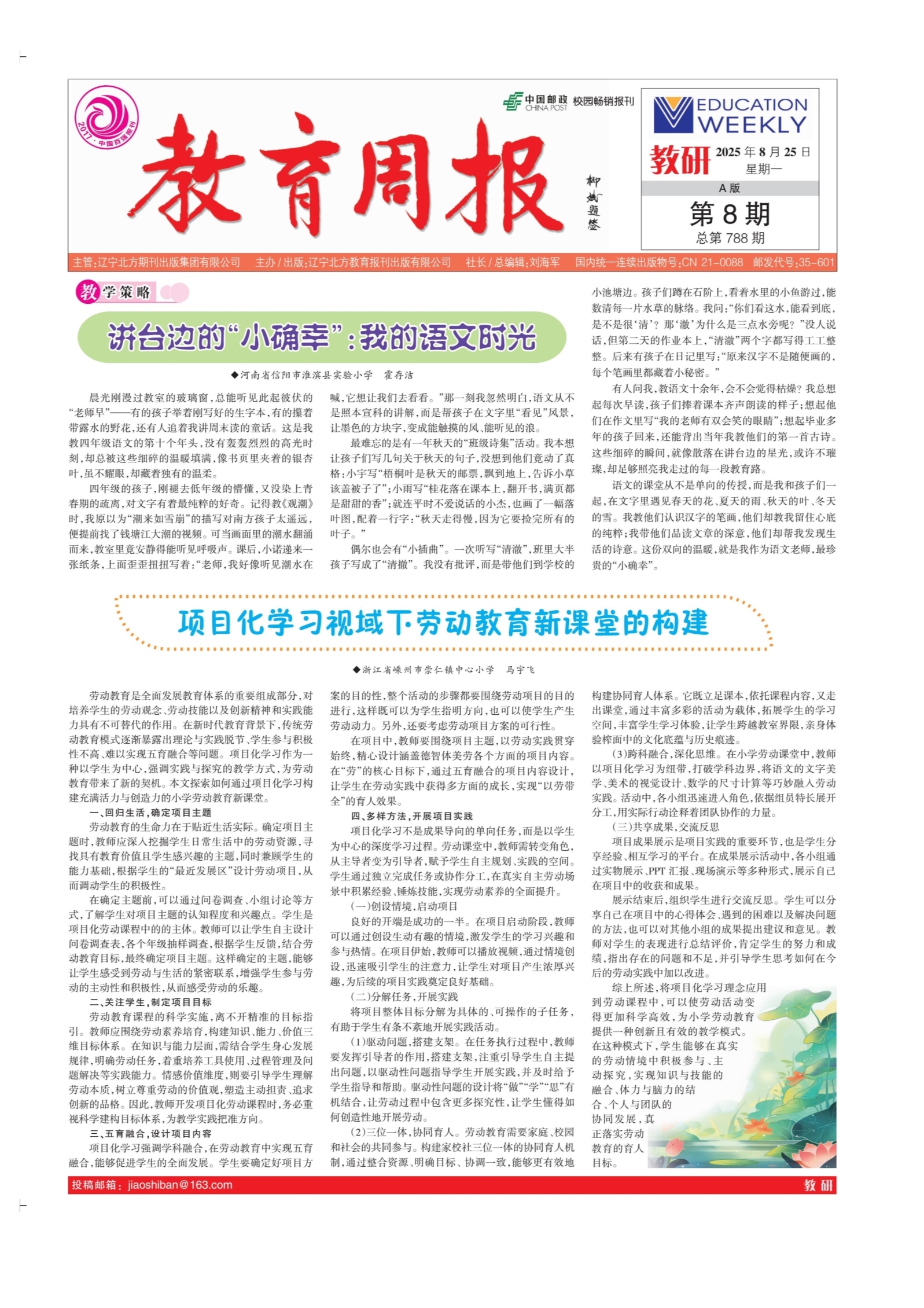 引言:随着《义务教育劳动课程标准(2022版)》的深入实施,教育领域正经历着一场以培养学生核心素养为导向的深刻变革。其中,劳动教育作为立德树人的重要途径,不仅承载着培养学生实践能力和创新精神的重任,更是落实“双减”政策、促进学生全面发展的关键环节。新课标明确指出,要立足本土,充分挖掘和利用当地的劳动课程资源,使劳动教育更加贴近学生的生活实际,增强其针对性和实效性。 我校以劳动教育为突破口,探索学