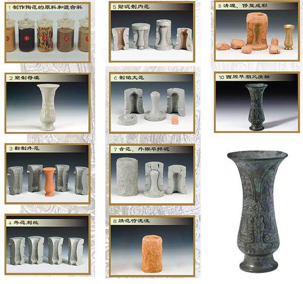 熔古烁今,历经3000多年传承,青铜器的铸造奥秘究竟何在?其实,我国古代青铜器制作有自己独特的传统,陶范块范法是我国古代青铜器成型技术的显著标志。 陶范块范法是以多块陶范装配铸造青铜器的方法,包括浑铸法和分铸法。器型较为简单的、可以一次铸成的器物,以浑铸法一次浇铸成型;器型较为复杂的器物,先铸造好部件,再经过二次,甚至多次分铸而成,连接的方法主要是铸接和铸焊。 那么,如何使用陶范块范法来制作一