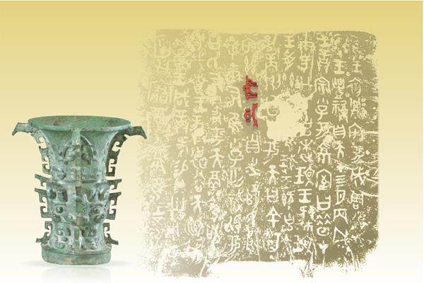 何尊是西周早期的一件尊形酒器,1963年出土于陕西省宝鸡市宝鸡县贾村镇(今宝鸡市陈仓区),现藏于宝鸡青铜器博物院,是该博物院的镇院之宝,同时也是国家一级文物,属于首批禁止出国(境)展览文物。 何尊通高38.5厘米,重14.6千克,口径为29厘米,圈足底径为20×20厘米。整体为圆口棱方体,圆形大敞口,口沿外卷较宽,厚方唇,颈较长,腹部微鼓,高圈足,体形像一个喇叭状的花瓶,又像一个“亚”字。