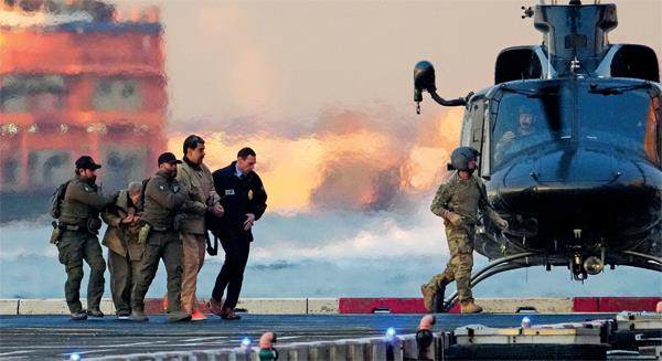 1月5日,在美国纽约,委内瑞拉总统马杜罗在执法人员陪同下前往联邦法院。图/IC 2026年伊始,两场军事行动以近乎科幻电影的方式震惊世界。 1月3日凌晨,委内瑞拉首都加拉加斯爆炸声撕裂夜空,全城陷入黑暗,美军展开“绝对决心”行动。当居民们还在惊慌失措时,美军特种部队已闯入总统官邸,控制住尼古拉斯·马杜罗夫妇,并将他们强行带上直升机。从第一声爆炸到委内瑞拉总统马杜罗登上“硫磺岛”号两栖攻击舰,全