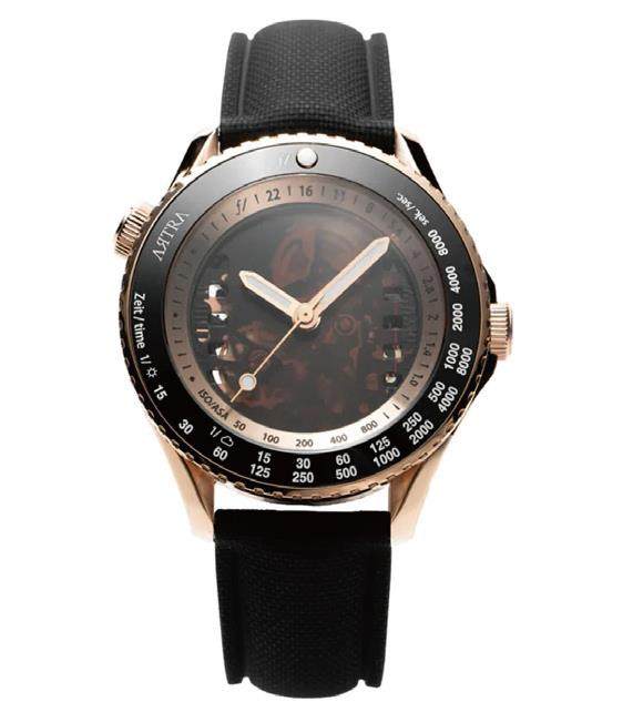 机械的心,摄影的魂 Camera One采用自动机械机芯与316L不锈钢表壳,搭配蓝宝石水晶镜面,规格扎实而不炫技。42毫米表径、15.2毫米厚度(含表镜),防水深度达到50米,配快拆式橡胶表带与不锈钢表扣,日常佩戴轻松应对。它的特别之处,在于“看得见的摄影语言”:从侧面望去,表壳上有如镜头一样的景深标记;表冠点缀一枚“小红点”,宛如镜头卡口的对位指示,默契地向器材党眨眼。 表盘是