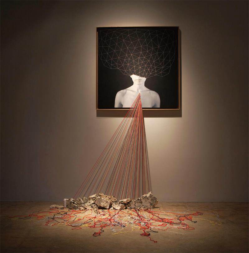 玛丽娜·丰特,《障碍》,基于摄影的装置 ,独版作品,喷墨打印于画布、石膏、棉麻线与岩石,尺寸可变,图像:91.5cm×91.5cm,2017 年, 作品图片由艺术家提供。 板块一:新模拟:后数字时代下的扩展摄影 策展人:米歇尔· 普瓦韦尔 助理策展人:张慧 在当今气候变迁的背景下,摄影为我们建构了怎样的自然图像?在对地球生态现状的纪实性呈现之外,艺术家们正积极探索新的视觉路径,以激发我们对